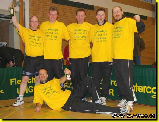 | Der größte Erfolg im Herrenbereich wurde am 19.2.2005 erzielt. Die 1. Herrenmannschaft mit Andreas Wiechers, Michael Podwonek, Matthias Häusler, Thorsten Glimmann, Torsten Pelzer und Daniel Mohns schafften bereits 3 Spieltage vor Saisonabschluss den Aufstieg in die Landesliga. |