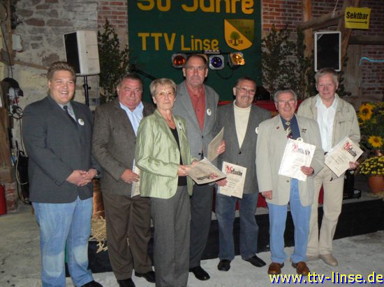 Am 9.7.1958 gründeten 13 Herren und 2 Damen unseren TTV Linse. Noch heute sind von den Gründungsmitgliedern 3 Personen dabei. Es sind das Ehrenmitglied Gustav Grupe mit seiner Frau Gisela und Winfried Pfaff. Seit Gründung des Vereins gab es nur 6 Vorsitzende.
